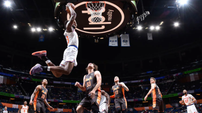 The Knicks jumped out to an early lead and led by 10 at the beginning of the 2nd quarter. But Orlando came back and when former Knick Ignas Brazdeikis hit a 3 with 3:51 left in the 2nd quarter — Orlando took a 45-44 lead.
