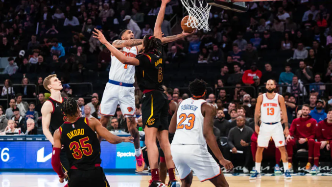 Meanwhile Darius Garland, Cleveland’s young star point guard — did distribute — for 13 assists and 24 points. The Cavaliers had a balanced attack — with Kevin Love killing the Knicks off the bench (15 points on 6-10 shooting, 3-7 from 3), center Moses Brown scoring 16 points with 13 rebounds, Caris LeVert scoring 19, and Isaac Okoro scoring 16.