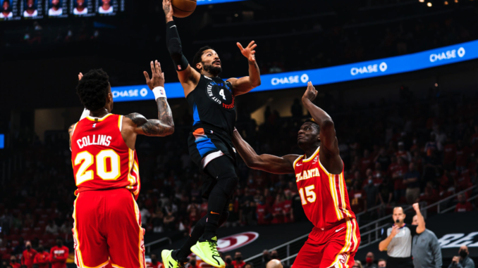 Rose had to guard Trae Young for almost the whole night — Rose played 39 minutes. Elfrid Payton did not start and did not play. Immanuel Quickley and Burks played the point when Rose wasn’t in (although Frank Ntilikina saw less than a minute of daylight in the 2nd quarter before coming back out).
