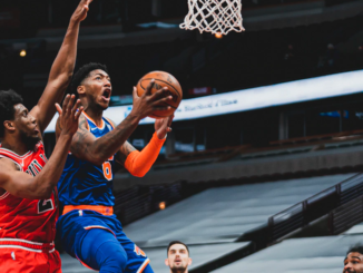 Coach Tom Thibodeau called time out. He replaced Derrick Rose — who had been scoring well but he may not have liked his defense on Malik Rose or Graham (and plus Rose had just missed the previous game with a slight ankle sprain), and went with Alec Burks at the point, and Immanuel Quickley at shooting guard, with Randle, Reggie Bullock, and Nerlins Noel.