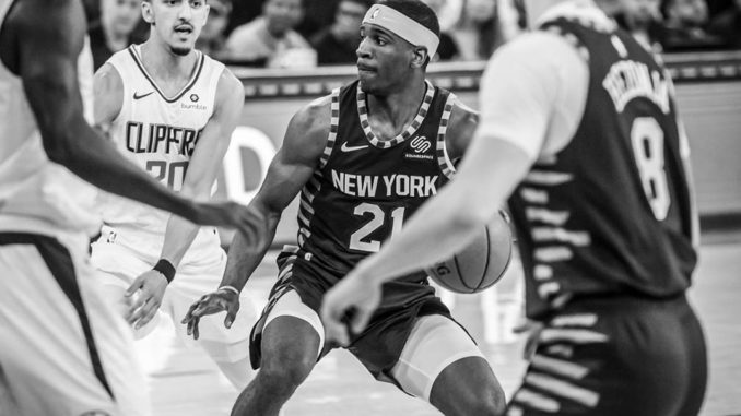 Kevin Knox had another good game — he was shooting well 4-9 (2-4) for 11 points in 19 minutes before going out with a sprained ankle. Patrick Beverly got under him on a 3, didn’t give him landing space, and Knox came down on Beverley’s foot. It should have been a foul on Beverely but no call.