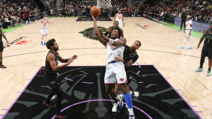 The Knicks were without Mitchell Robinson — out for scheduled rest — and Josh Hart, and that hurt them on the boards as they were outrebounded most of the night — 50-43 overall. Although KAT, OG, and McBride came up with big rebounds in the 4th and the Knick defense in the 2nd half amped up for the win.