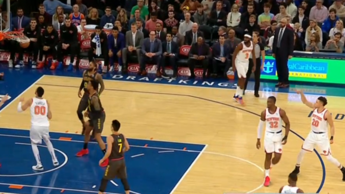 Kevin Knox was a human highlight reel in the first quarter for the Knicks — but only took 6 shots in the second half. They didn’t get him the ball. Emmanuel Mudiay with another 32 point game on 12-20. He is the Knicks point guard.