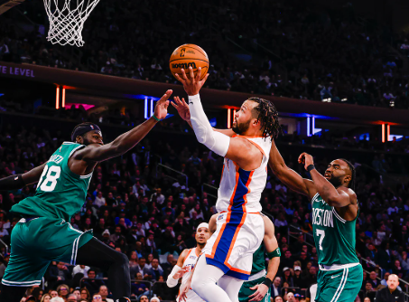 A play later, the Knick defense stymied Boston as Derrick White got off a misguided 3 attempt as the 24-second clock was expiring — but the refs ruled Miles McBride had fouled him. A phantom foul it seemed on the replay but NY didn’t challenge and White hit 3 free throws.