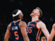 Utah is led by Lauri Markkanen, averaging 25.6 ppg, 8.6 rpg, and shooting .391 from 3 and .875 in free throws. John Collins starts at power forward and Simone Fontecchio is at small forward. Kris Dunn provides hard defense at the shooting guard position, and Colin Sexton leads them at the point, averaging 14.3 ppg. Jordan Clarkson — who has been the target of Knick trade rumors — comes off the bench averaging 20.8 ppg,