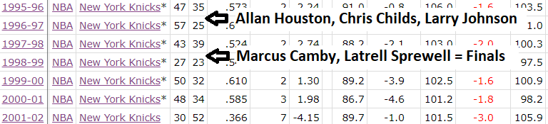- The Sprewell-for-Starks-&-Camby-for-Oakley retool got the Knicks to the finals in 1998-99.