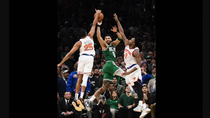 Boston came out looking to make up for the loss in Game 1, when the Knicks came back from 20 points down to win. Derrick White was hitting 3’s and Jaylen Brown was scoring on pullups as Boston raced out to a 24-11 lead.