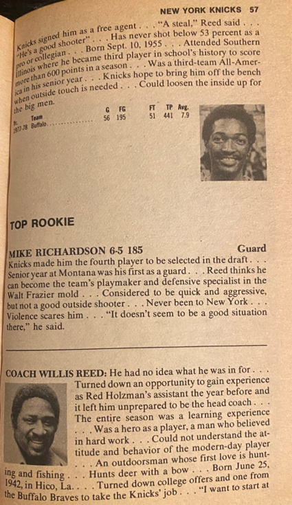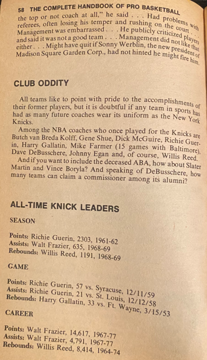 As mentioned above, Willis Reed lasted only 14 games the coming season as coach. Again Zander Hollander was spot on in his analysis.