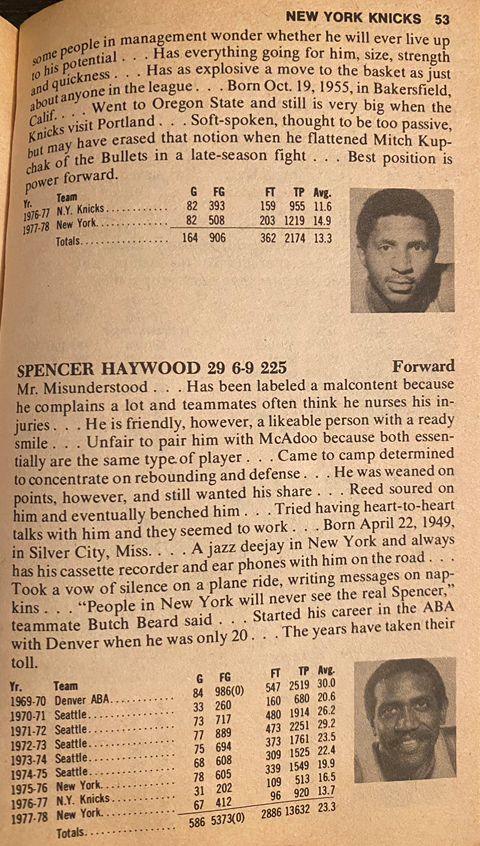 Meanwhile Spencer Haywood averaged 17.8 points and 6.1 rebounds — empty numbers — especially the rebounds — before getting traded in January of 1979 as the Knicks pulled the plug on this team.