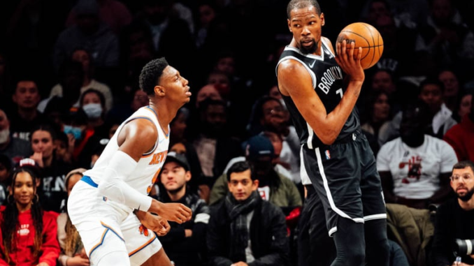 Julius Randle retaliated after Durant’s 3 with a drive down the lane for a dunk, and the Knicks got the ball again after a Durant miss — with a chance to take the lead with 10 seconds left — but Evan Fournier from the baseline, made a bad pass inside to Mitchell Robinson, intercepted by Bruce Brown, and that was ballgame. The Knicks had to intentionally foul and Brooklyn got the ball to Durant — who made both free throws to ice it.