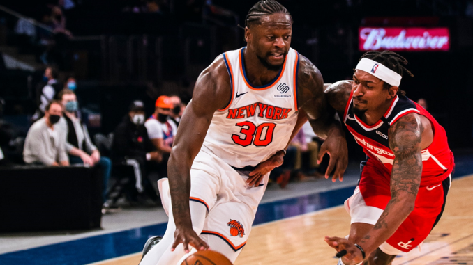 Hours after receiving a $15,000 fine for arguing with refs the game before on the controversial foul call that cost the Knicks a win, Julius Randle wrecked vengeance on the unsuspecting Washington Wizards, hitting seemingly every shot he took in the first half to lead the Knicks to a blowout win at Madison Square Garden. NY led by 30 points for a good portion of the 3rd quarter.