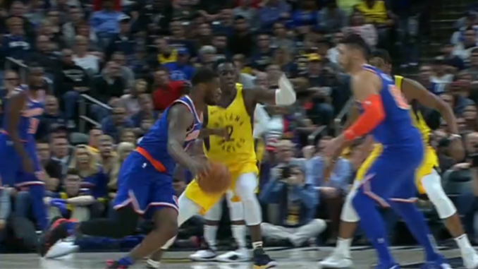 - Last time Knicks played Indiana, Domantas Sabonis had his way with them — he was 11-11 from the floor. This time, Enes Kanter played him tough all game — going at him offensively (7-11, 20 pts, 15 rebounds to Sabonis’ 6-10, 13 pts, 12 rebounds). Kanter offered up well-meaning, decent defense in general. He may be slow but is not a slouch. He brings energy.