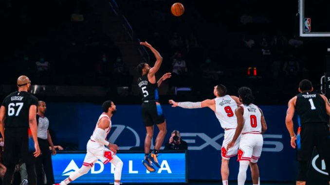 The Knicks had jumped out to an early double-digit lead in this one, but Chicago kept coming back on 3-pt shooting of Garrett Temple, Nikola Vucevic, Lauri Markkanen, and Coby White amongst others. Vucevic, Temple, and Thaddeus Young also hurt the Knicks inside. Zach LaVine was not playing but Chicago looked dangerous without him. Markkanen made a traditional 3-pt play (bucket and foul) with a minute left in the 3rd to put Chicago up by a point for the first time since the beginning of the game.