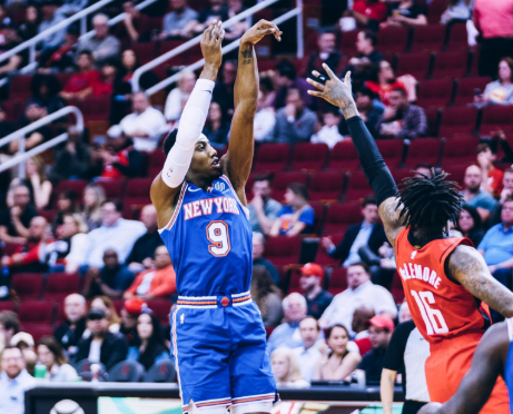 And Julius Randle has had better games — he was 5-14 for 17 points, 12 rebounds but was stripped a few times inside by the smaller Houston players. Taj Gibson was his usual solid self; 6 points on 3-5 shooting, 5 rebounds in 12 minutes. Kevin Knox got minutes — 3 points on 1-6 in 12 minutes. Not very solid. Poor shooting.