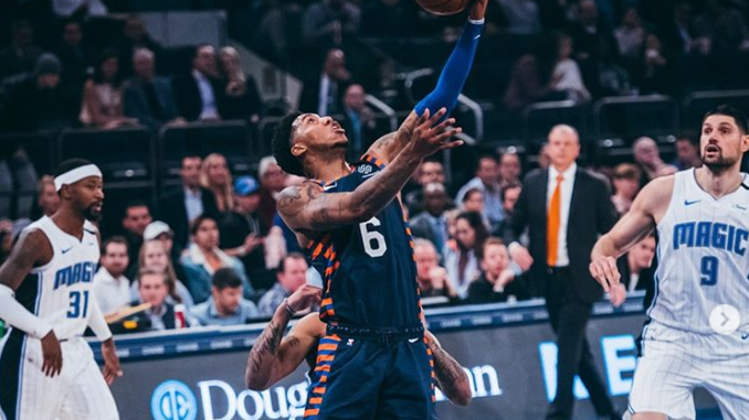 After the Knicks had jumped out to a big lead in the 1st quarter of this game with suffocating defense during which Payton picked up 4 steals in the first 8 minutes and Dennis Smith Jr and Frank Ntilikina came in to get steals of their own and contribute to the lock-down defense, Orlando came back with a torrid defense of their own in the 3rd quarter (Orlando leads the NBA in least points allowed) to take a 10-point lead over the Knicks with 10 minutes left in the 4th. That’s when coach Mike Miller inserted 3-pt specialist Wayne Ellington — and unlike numerous times when former coach David Fizdale used the strategy — it worked for Miller.