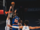 It came down to a final shot — and a controversial ref call — a 3-pt jump shot by Julius Randle aiming to tie the game with 5 seconds left that Kyrie Irving got a hand on — Randle came down with the ball and refs called it a travel; Julius and many observers felt it was a blocked shot and still Knicks ball.