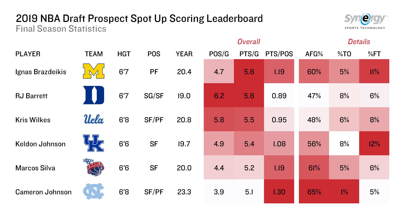 - 2nd-round pick — the Knicks traded up for the #47 pick and used it for 6’7″ scorer, Ignas Brazdeikis — a Lithuanian who grew up in Canada and starred as a freshman on Michigan. GM Scott Perry said Brazdeikis had really good analytics. (See below.)