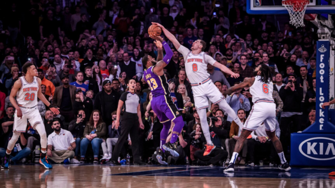 Next time down court, Mudiay hit two free throws to put the Knicks ahead by a point. And then.. LeBron James took the Lakers’ final shot, guarded by Mario Hezonja.