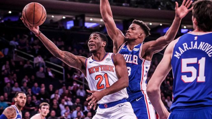 Allonzo Trier played well — 19 pts (5-9), and Kadeem Allen had 13 pts (5-11). But poor shooting by Dennis Smith Jr (5-15, 13 pts), Damyean Dotson (6-16, 16 pts), and Luke Kornet (2-11, 7 pts) doomed the Knicks.
