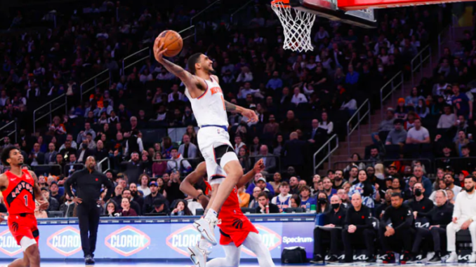 Obi Toppin continued his high-wire heroics, scoring a new career high of 42 points, and Immanuel Quickley had another Triple Double — leading the Knicks to a start-to-finish win over the Toronto Raptors, who were resting key players for the playoffs.
