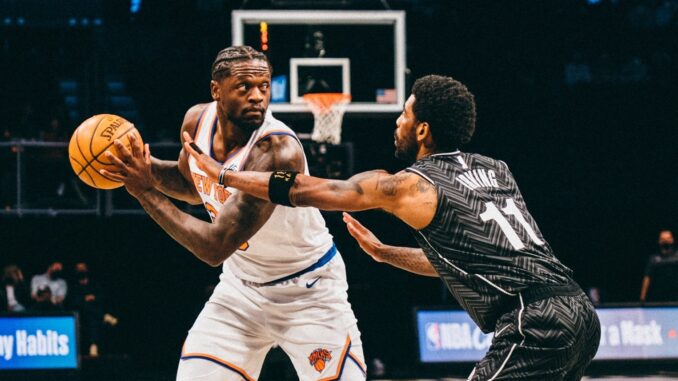 The Knicks played a fantastic pressure on-ball defense in the last minute — instead of fouling. Down 3 with 7.7 seconds left the Knicks pressure 0n-ball defense forced a Nets turnover. A foul was called on RJ Barrett for reaching in but replay showed he clearly had hand on all ball — and the Knicks successfully challenged the call, which gave them the ball and Julius Randle the chance to tie with the 3. Because of that won challenge, the Knicks couldn’t challenge the ensuing controversial call that Randle traveled when others felt it should have been called an Irving block and Knicks ball.